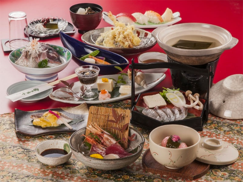 (先付け、前菜、お造り、吸物、蒸し物、揚物、焼き物、食事、デザート)